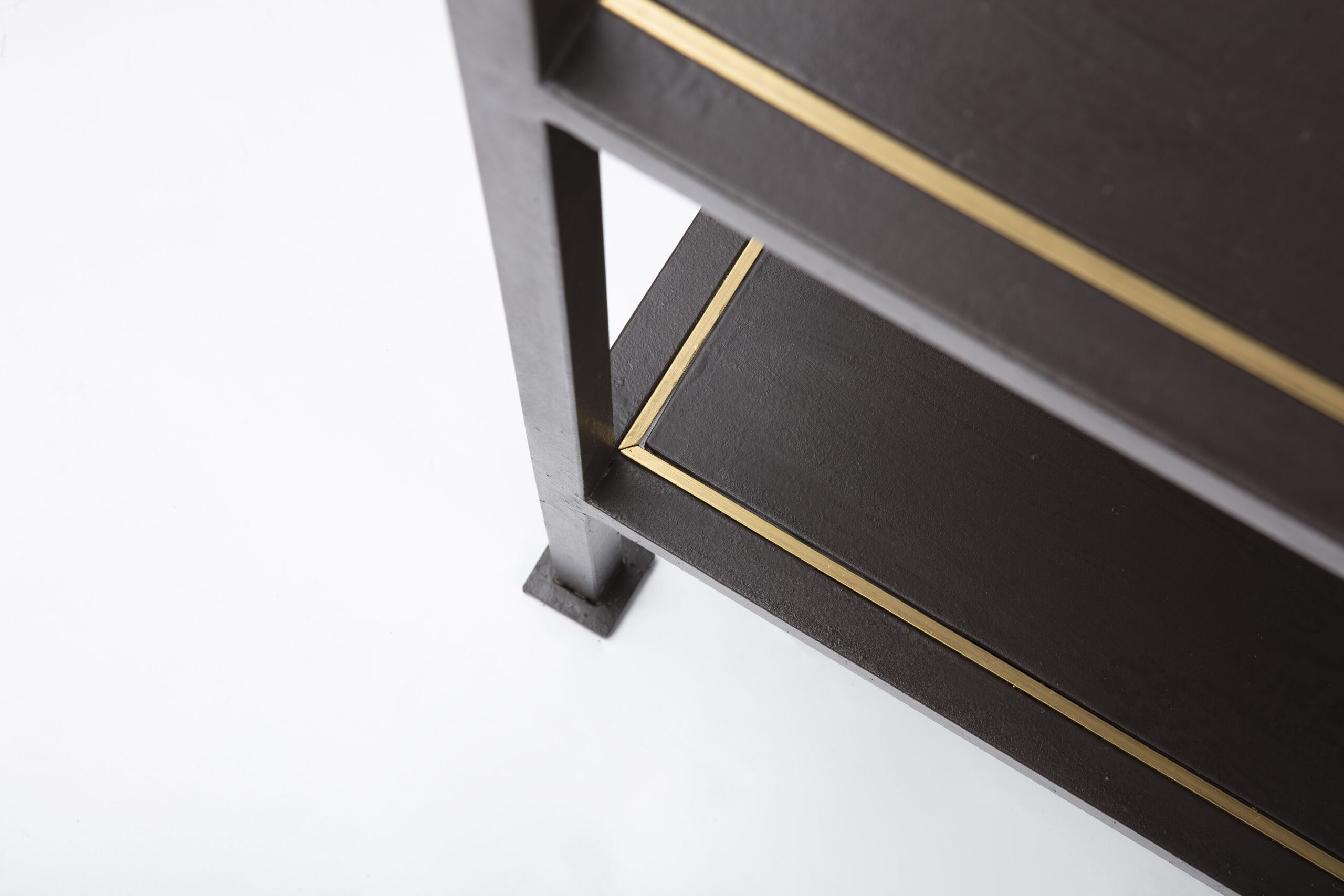 coppia di consolle in ferro con profili in ottone.